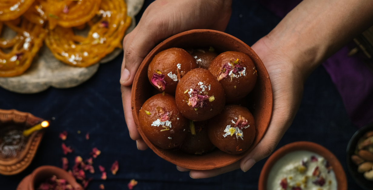 Deep-fried dumplings soaked in sugar syrup.